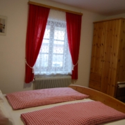 Belegung: 2 – 5 PersonenNeuwertige Ferienwohnung im Nebenhaus (1. Obergeschoß) mit Schlafzimmer, Wohn-Schlafzimmer, separater Küche, Vorraum, DU/WC und Balkon. SAT-TV, WLAN und Telephon bzw. Bettwäsche etc. sind vorhanden. Parkettboden! Separater Wohnungseingang!