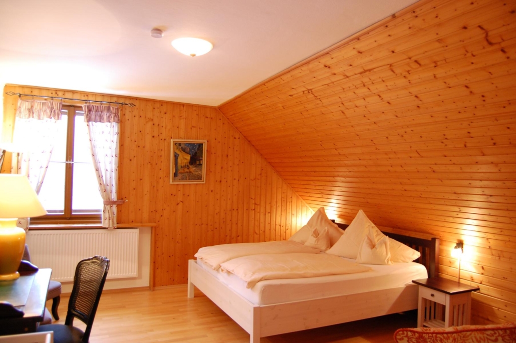 Belegung: 2 – 4 PersonenGrosses Doppelzimmer mit DU/WC mit zusätzlicher Schlafcouch und Kinderbett. SAT-TV, WLAN und Telephon mit Durchwahl sind vorhanden. Parkettboden!